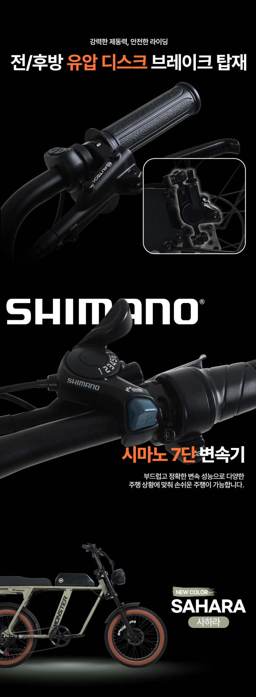 AU테크 엑스트랙 몬스터 팻바이크 자토바이 850W PAS 스로틀 전기자전거 48V 15Ah 사하라