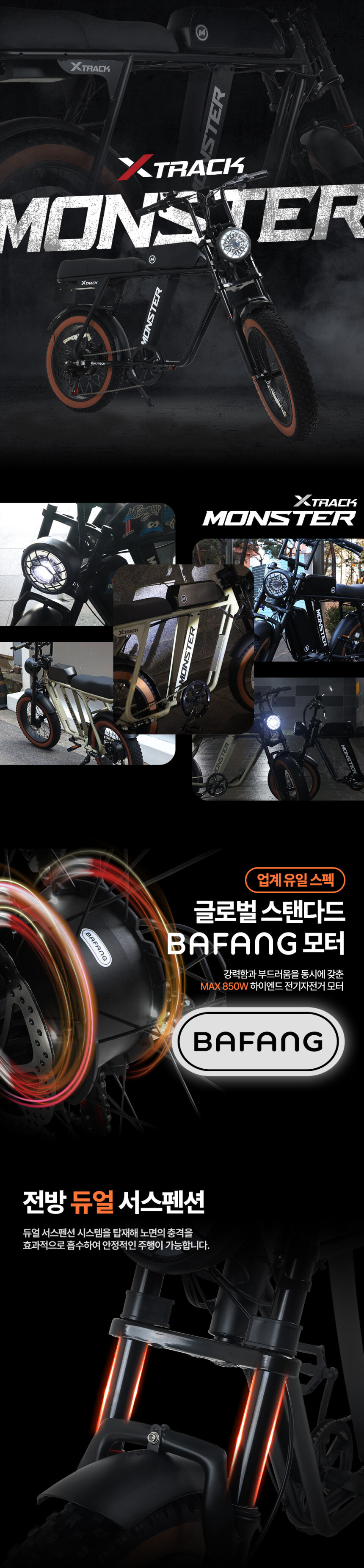AU테크 엑스트랙 몬스터 팻바이크 자토바이 850W PAS 스로틀 전기자전거 48V 15Ah 블랙