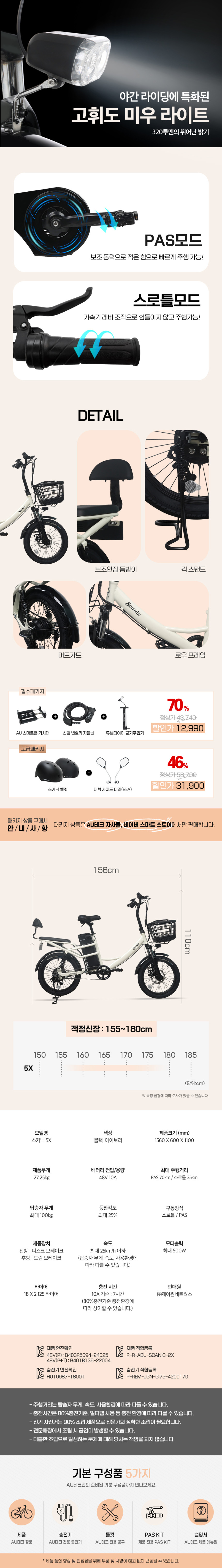 AU테크 스카닉 5X 여성용 2인용 등하원 바구니 전동 전기자전거 48V 10Ah