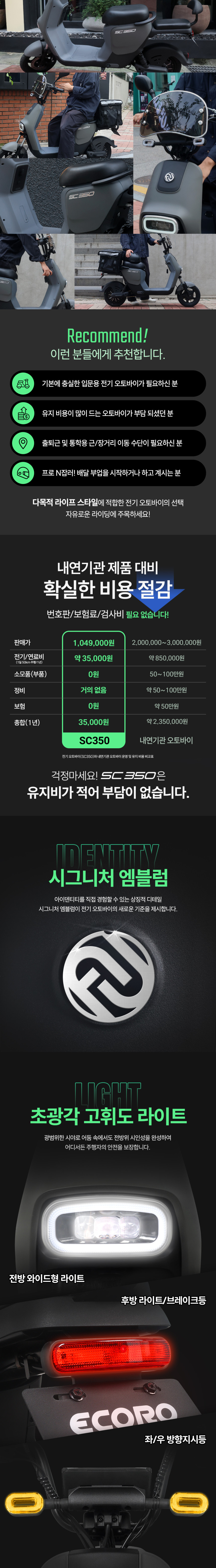 AU테크 에코로 SC350 2인승 배달 전동 전동 스쿠터 오토바이 리튬 배터리 48V