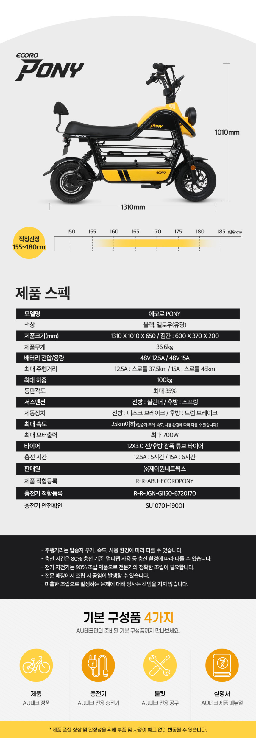 AU테크 에코로 포니 여성 애견 반려견 전기 전동스쿠터 48V 15Ah 삼성LG셀