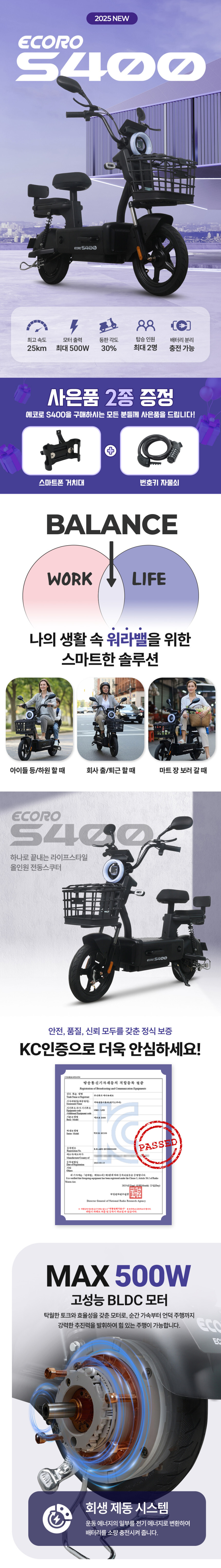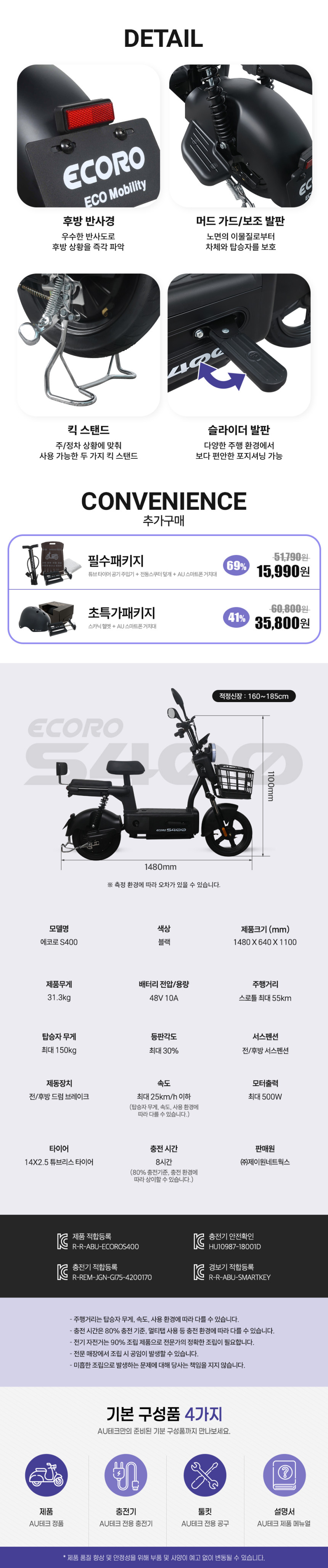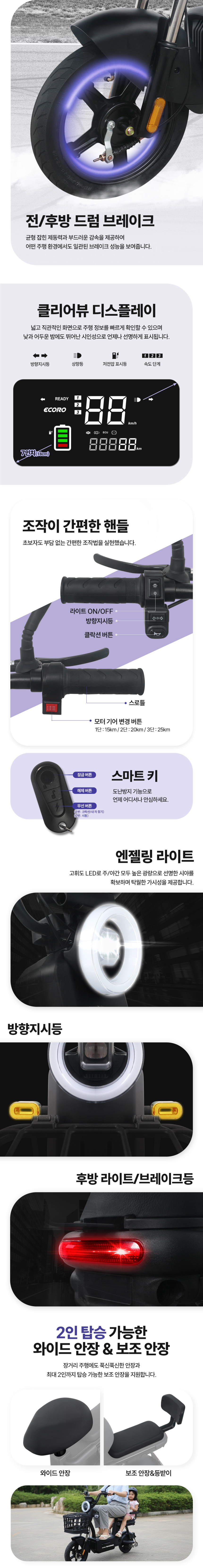AU테크 에코로 S400 500W 2인용 여성 출퇴근 유아동승 48V 전동 전기스쿠터