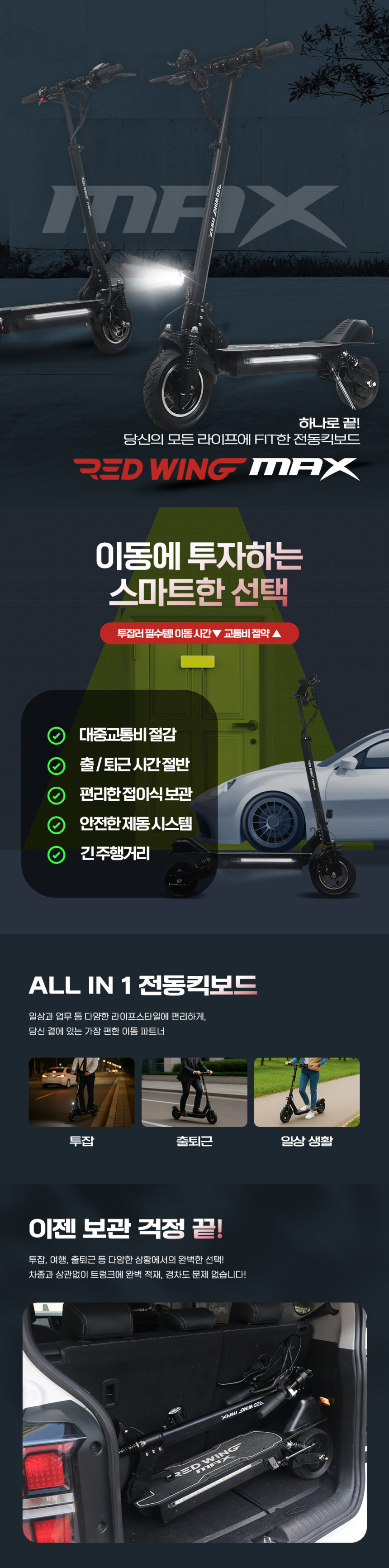 AU테크 레드윙 맥스 대리기사 출퇴근용 800W 48V 전기 전동 킥보드
