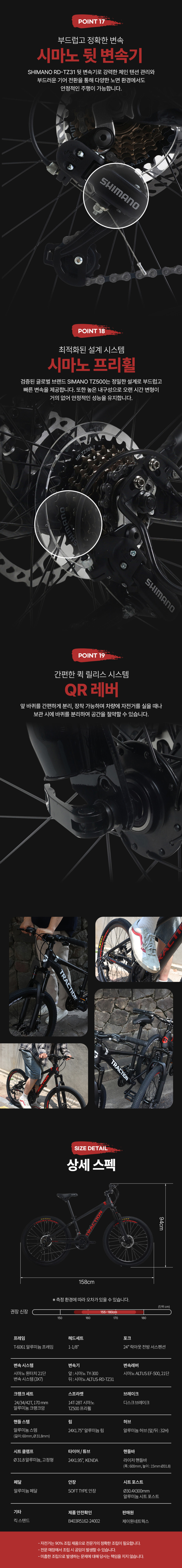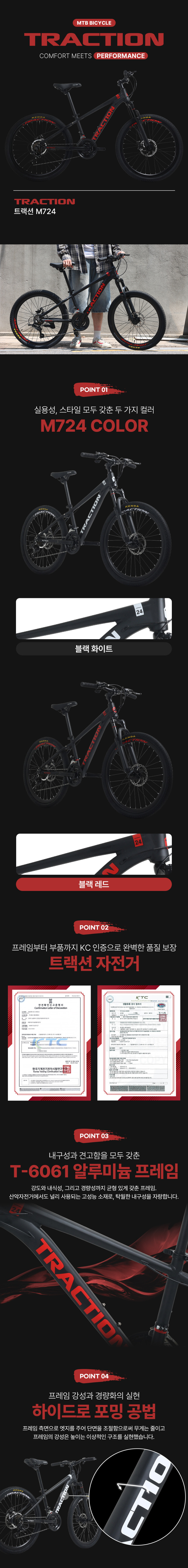 트랙션 M724 MTB 로드 24인치 알루미늄 시마노21단 성인 중학생 출퇴근 자전거