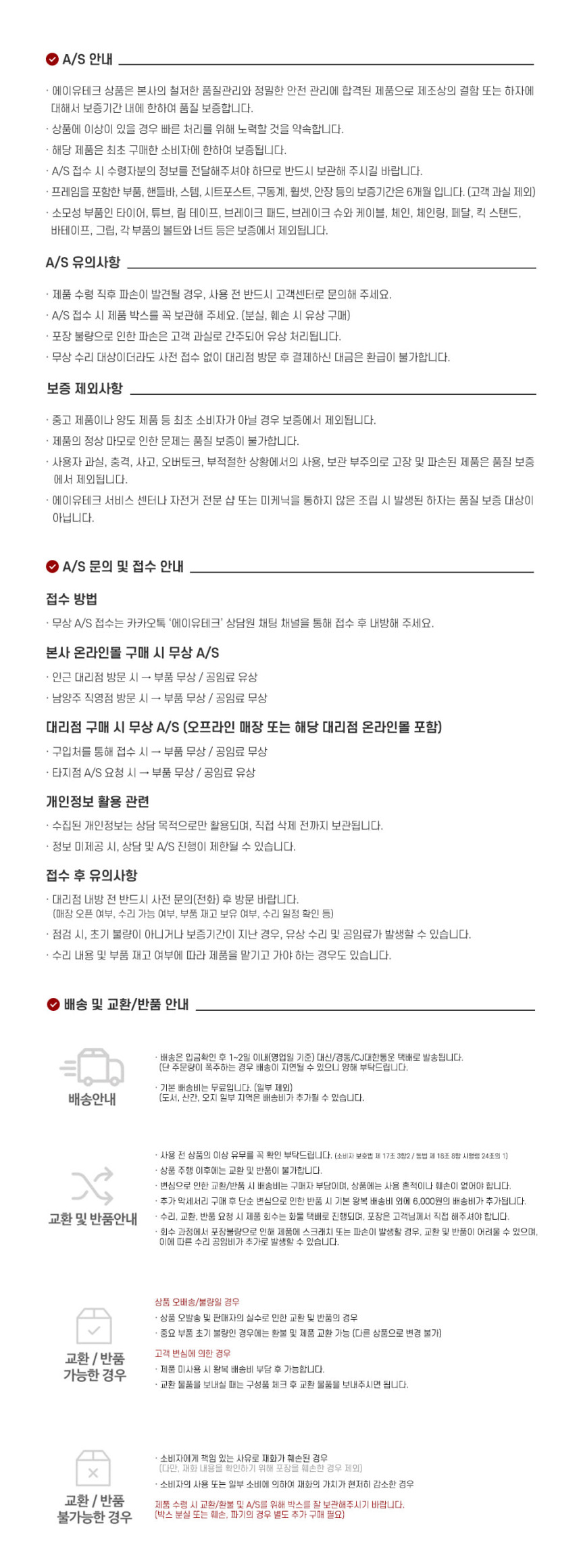 A/S 책임자와 전화번호 제품 상세정보 참고