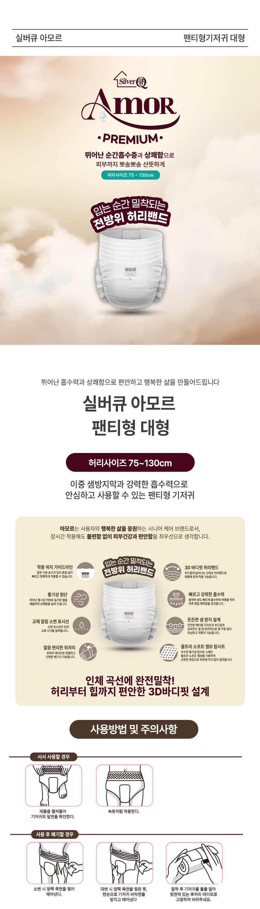실버큐 아모르 팬티형 대형 10매 8팩