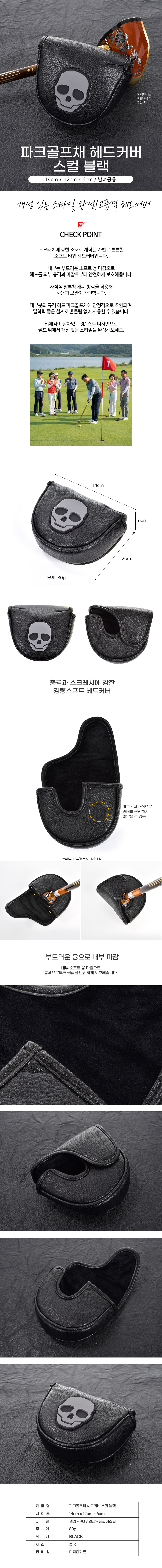 스컬 파크골프채 클럽 헤드커버 블랙