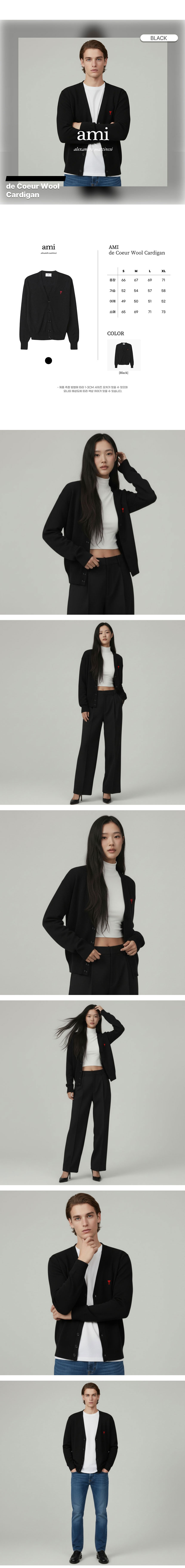 아미 드 꾀흐 스몰 하트 로고 브이넥 울 여성 가디건 블랙