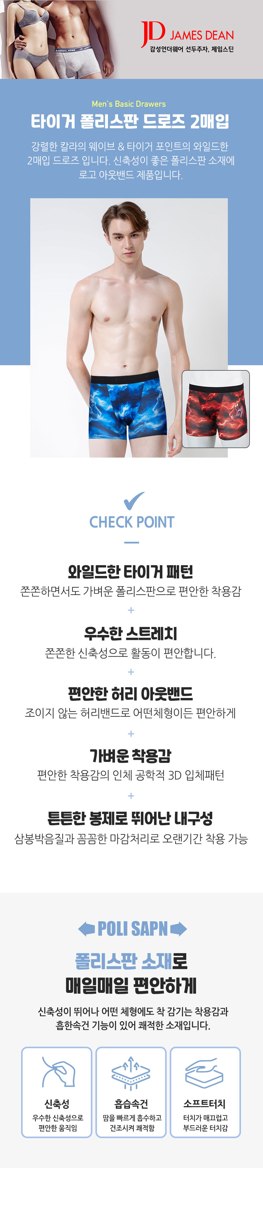 제임스딘 남성 웨이브 폴리스판 남자 드로즈팬티 2종