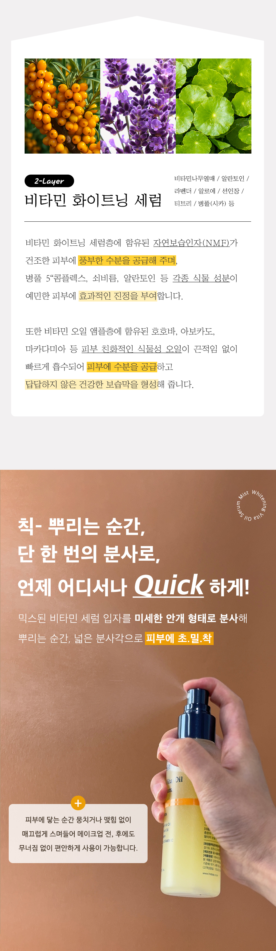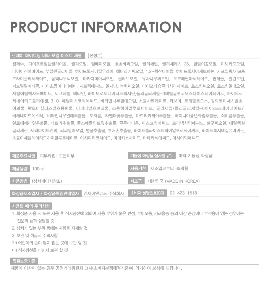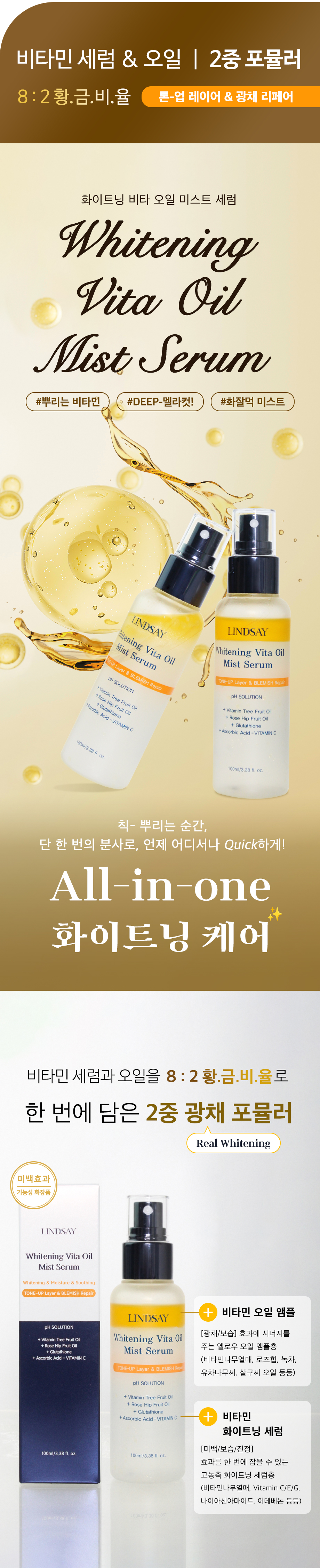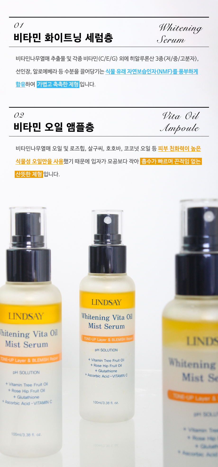 린제이 메이커픽서 마데카 승무원 화이트닝 수분 비타 오일 광채 미스트 세럼 100ml