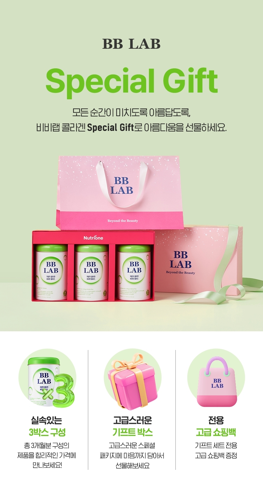 [차주영 PICK] 뉴트리원 비비랩 저분자 콜라겐 비오틴 플러스 3개입 선물세트 + 쇼핑백 (3개월분)