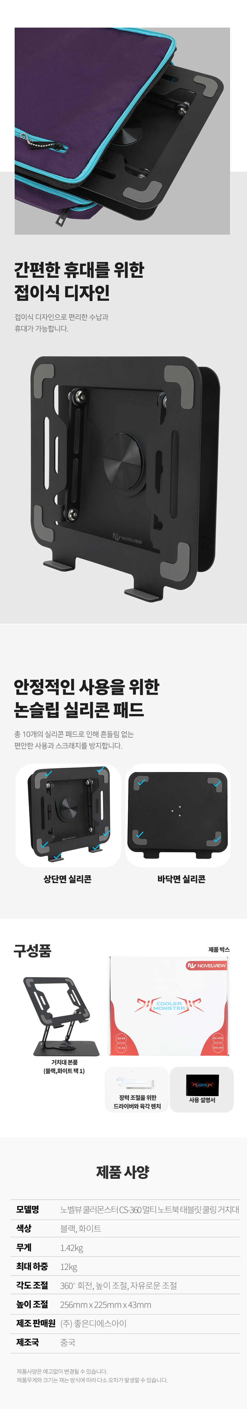 노벨뷰 쿨러몬스터 CS-360 멀티 노트북 태블릿 쿨링 거치대