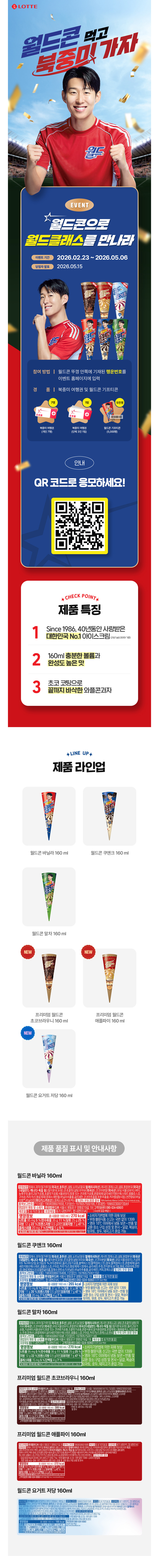 [롯데] 손흥민 한정판 월드콘 쿠앤크 160ml x 16개