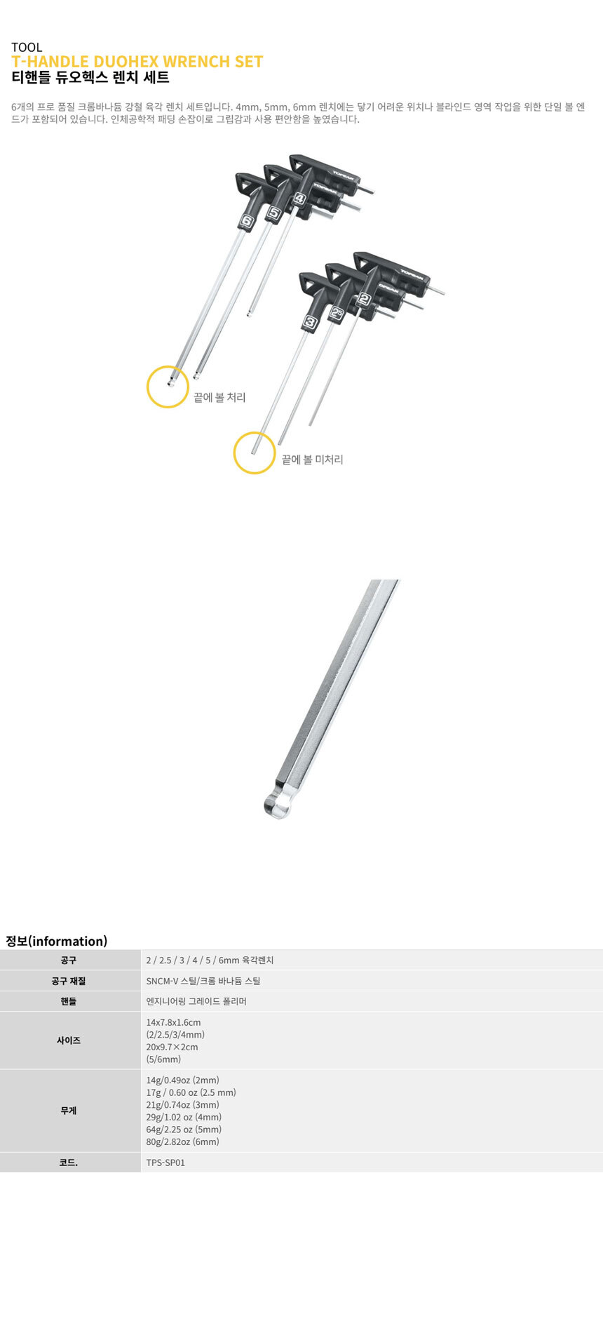 토픽 크롬 바나듐 스틸 합금 육각렌치 공구 T-Handle DuoHex Wrench Set