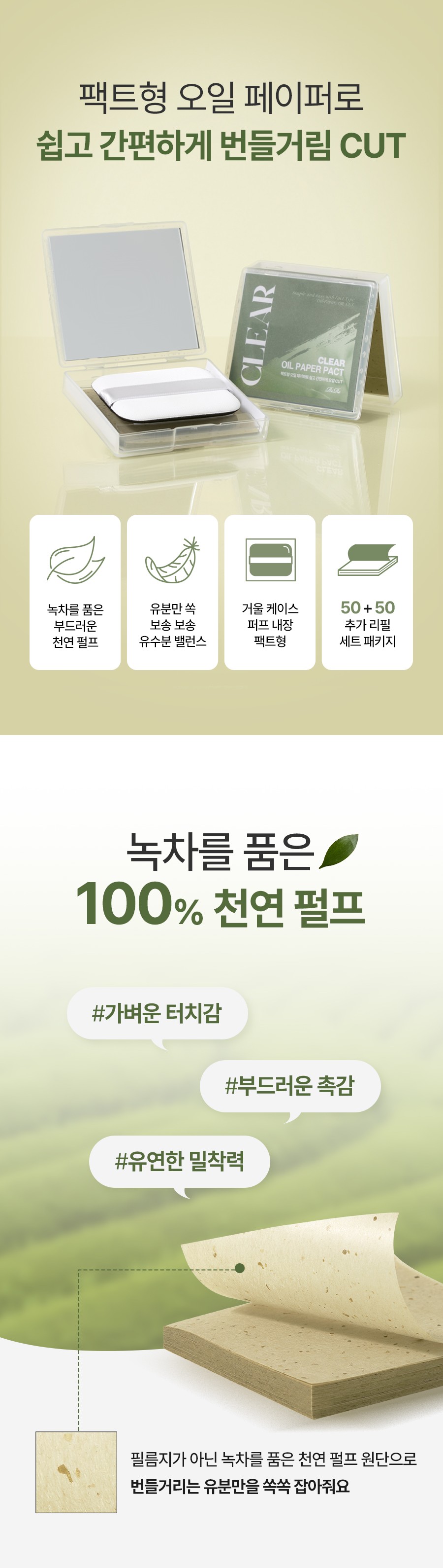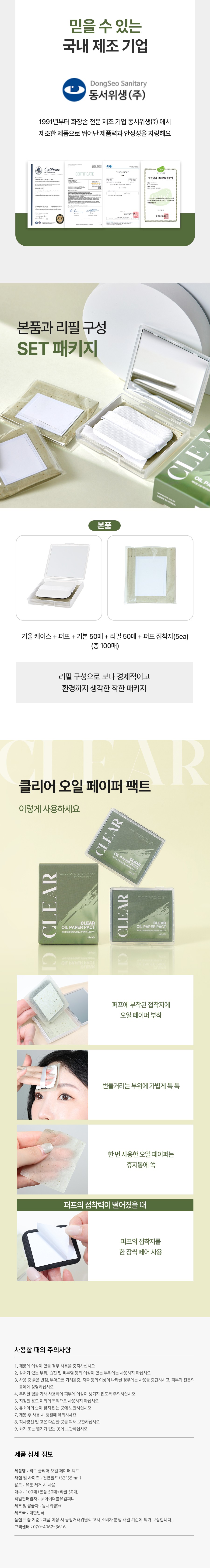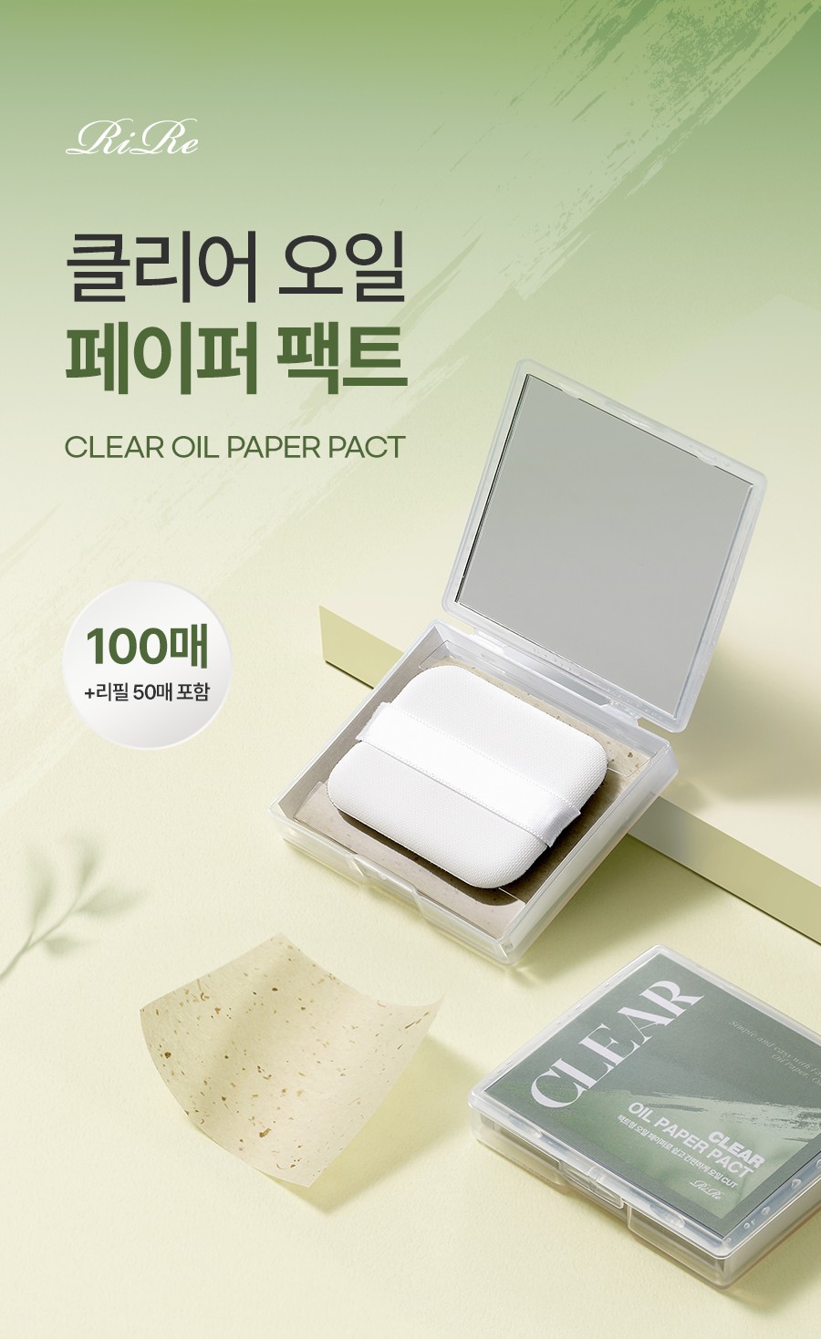 [리르] 클리어 오일 페이퍼 팩트 100매(기본50매+리필50매)