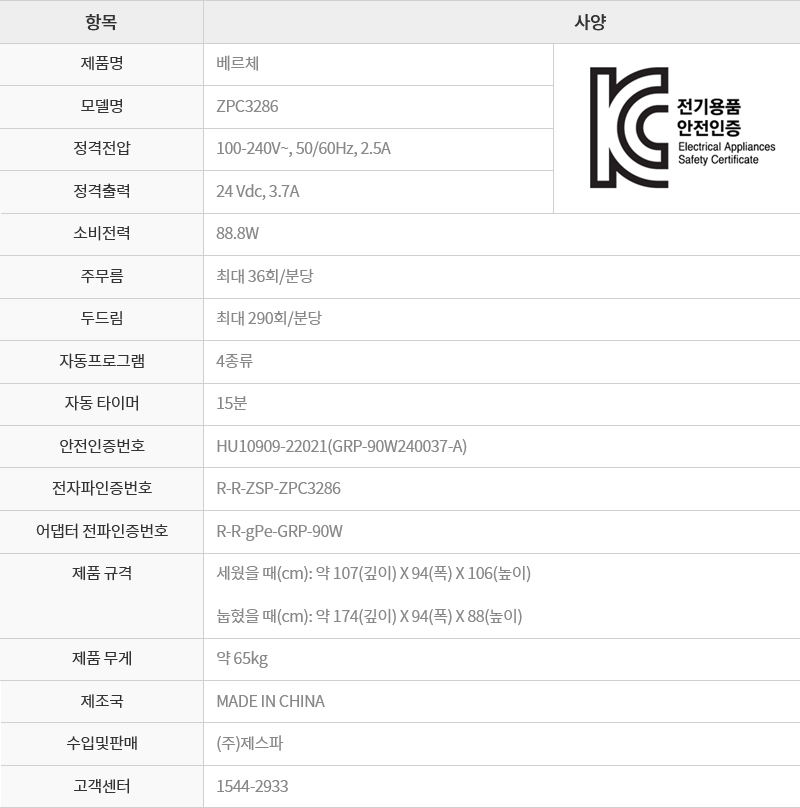 [제스파] 베르체 리클라이너 마사지 소파 ZPC3286