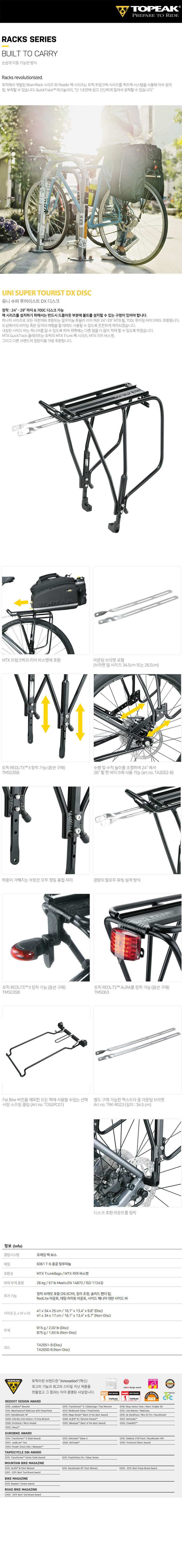 토픽 알루미늄 튜브형 리어 랙 UNI SUPERTOURIST DX DISC