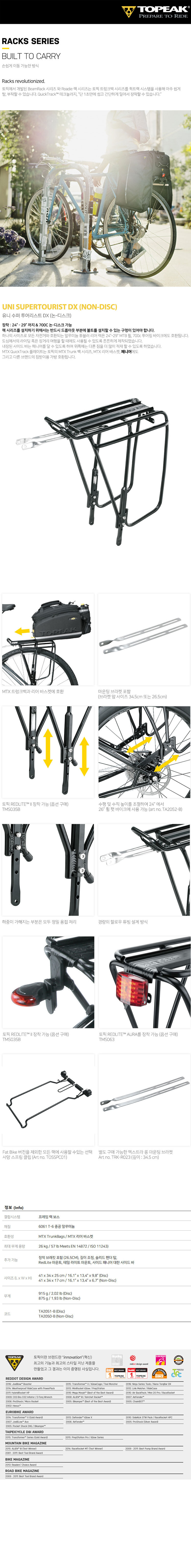 토픽 알루미늄 튜브형 리어 랙 UNI SUPERTOURIST DX