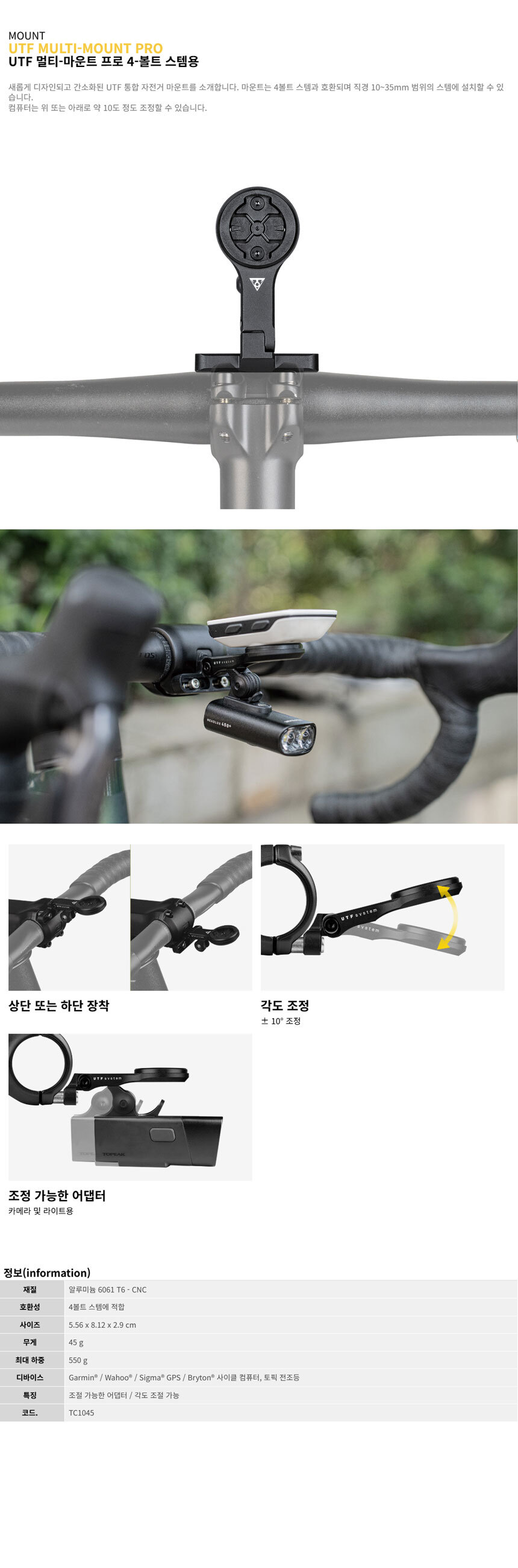 토픽 통합 자전거 마운트 UTF MULTI-MOUNT PRO 4-볼트 스템용