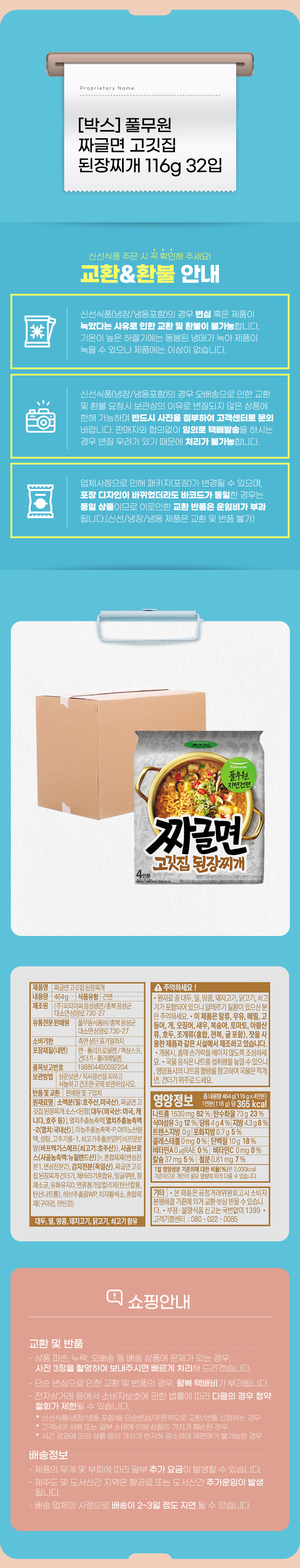 [박스] 풀무원 짜글면 고깃집 된장찌개 116g 32입