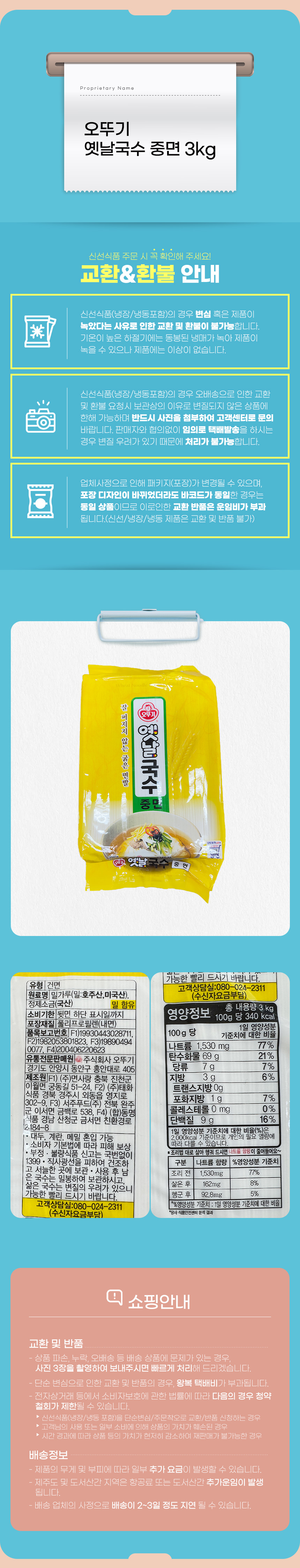 오뚜기 옛날국수 중면 3kg