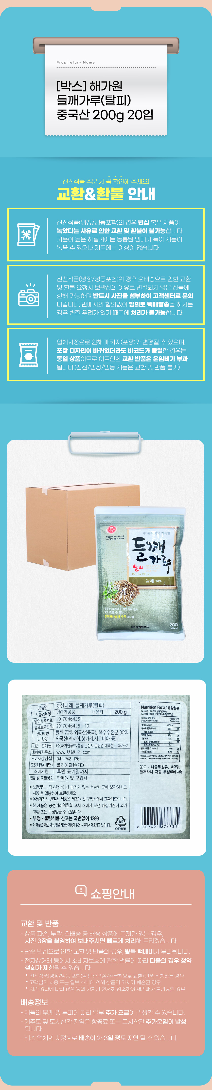 [박스] 해가원 들깨가루(탈피) 중국산 200g 20입