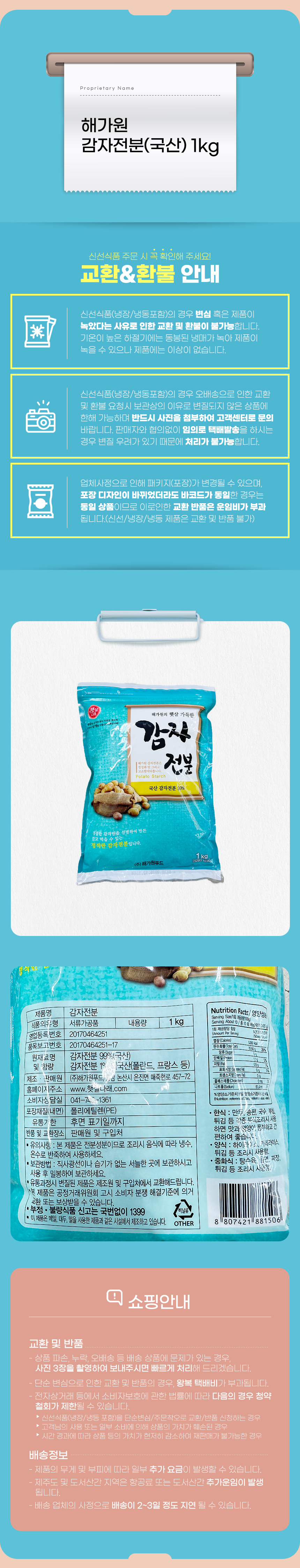 해가원 감자전분(국산) 1kg