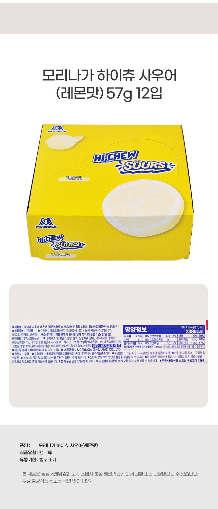 모리나가 하이츄 사우어(레몬맛) 57g 12입