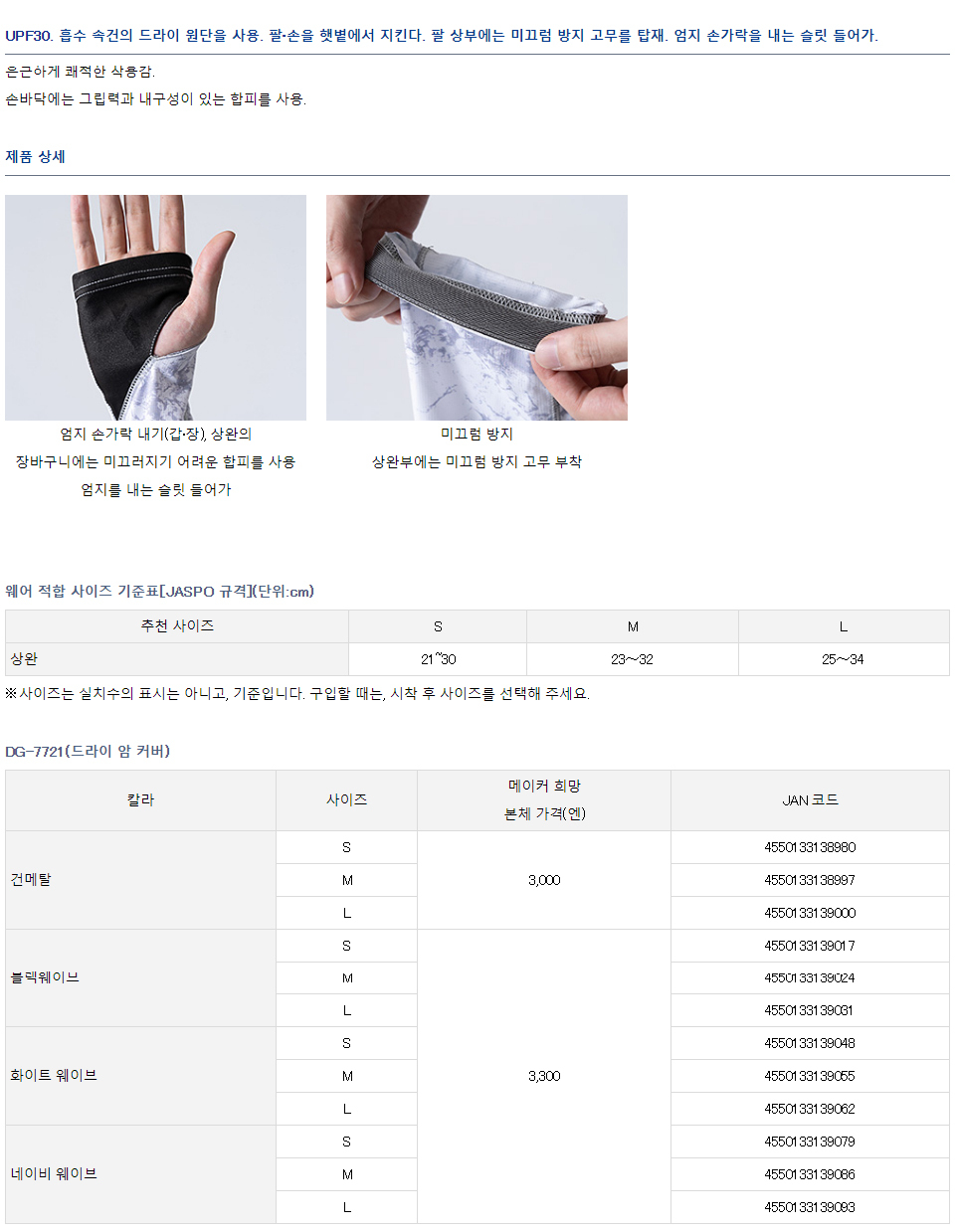 다이와 DG-7721 드라이 암 커버 건메탈 팔토시 한국다이와