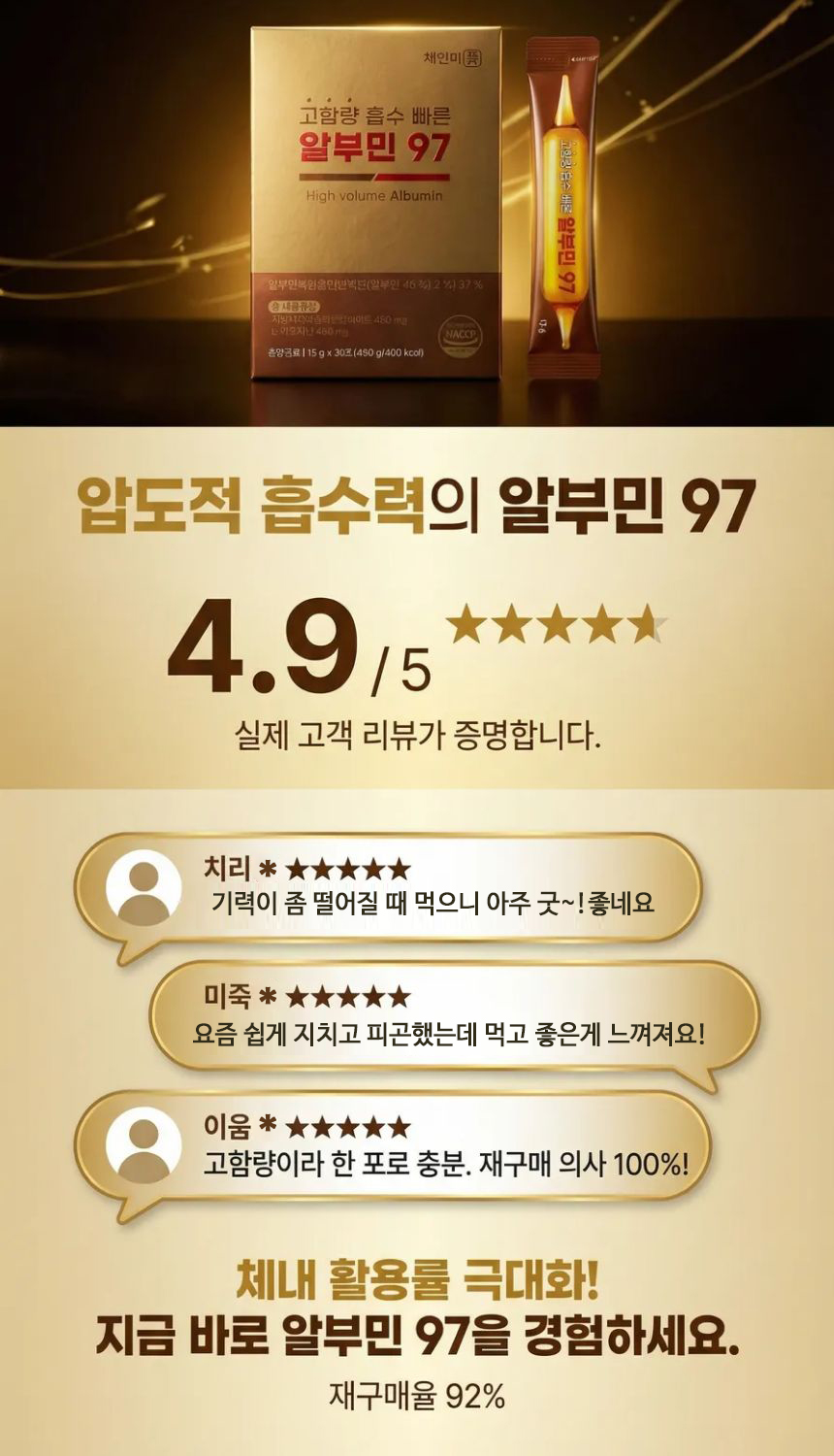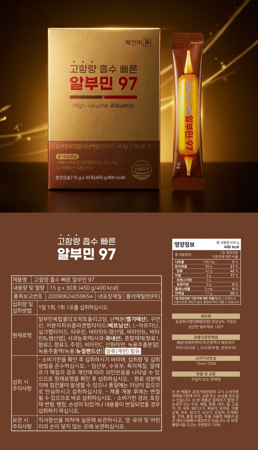 고함량 흡수 빠른 마시는 알부민 97 HACCP인증 15g 30포 1개월분