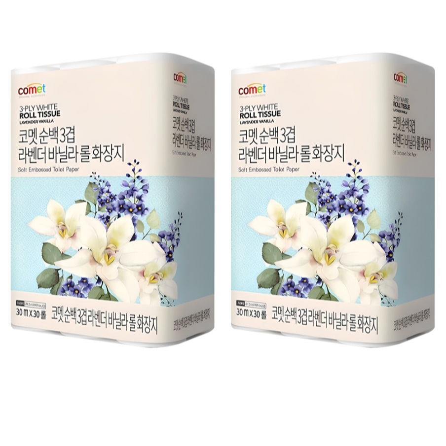 쿠팡구매대행 코멧 순백 3겹 라벤더 바닐라 롤화장지 30m