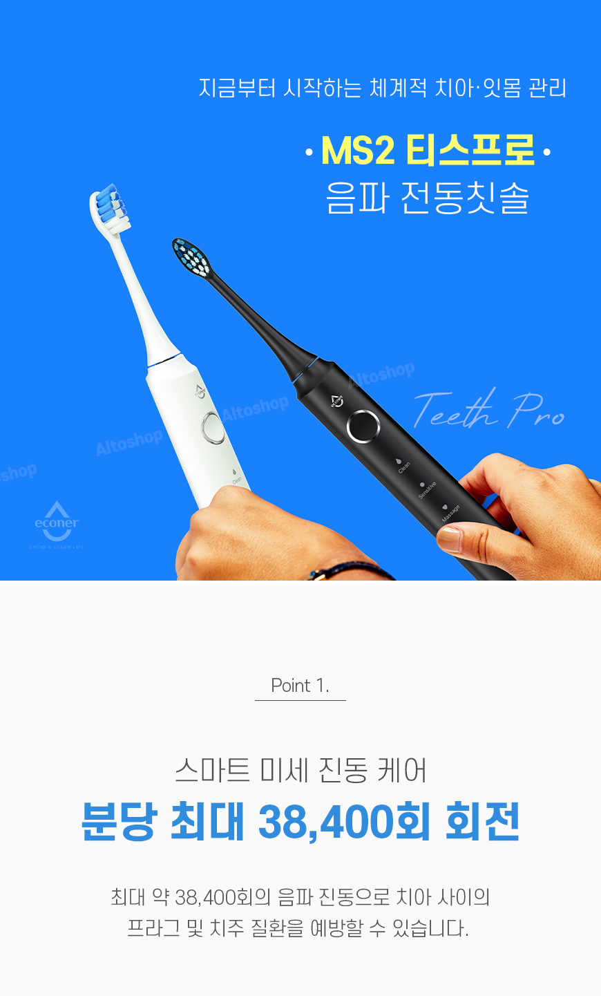 [오픈마켓] 에코너-MS2 티스프로 음파 전동칫솔 제트블랙