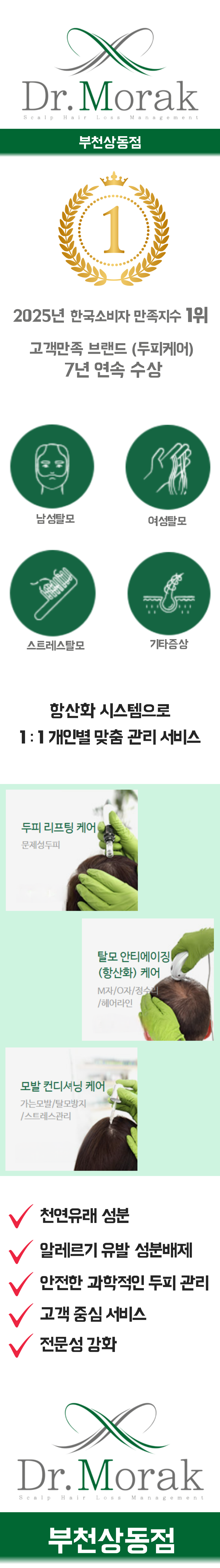 두피, 탈모 2025년 한국소비자만족지수 1위 닥터모락 부천상동점