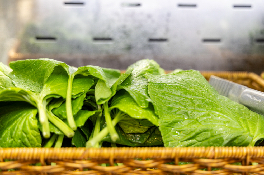신선한 와사비잎과 해물강된장, 제주산 돼지고기전지를 비법 고추장과 간장으로 숙성한 부드러운 양념불고기를 함께 즐길 수 있는 건강한 메뉴입니다.
