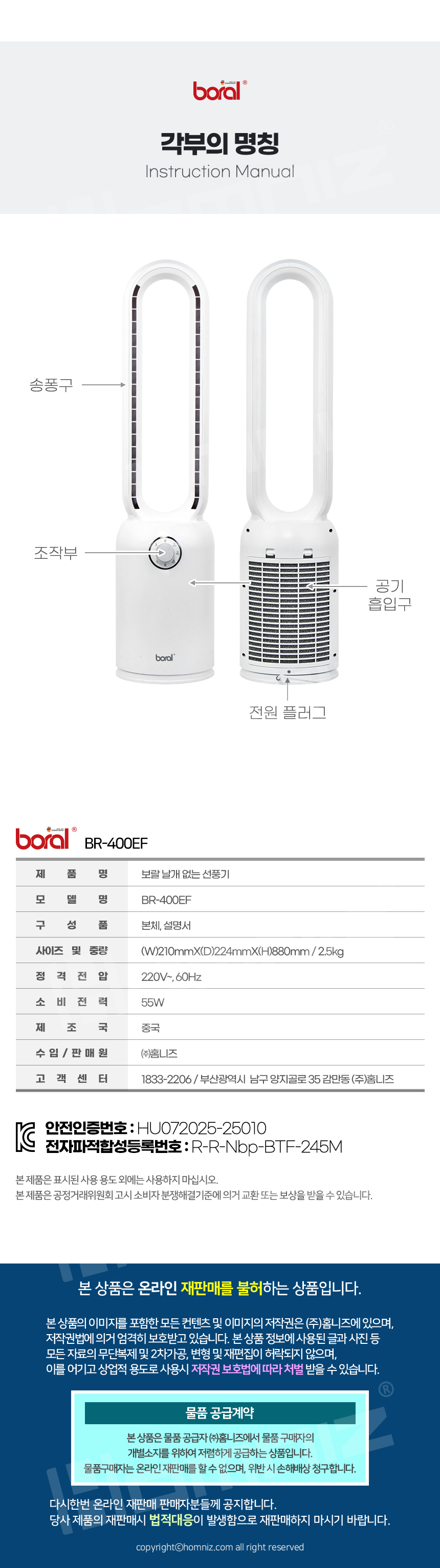 보랄 날개없는 선풍기(기계식) BR-400EF