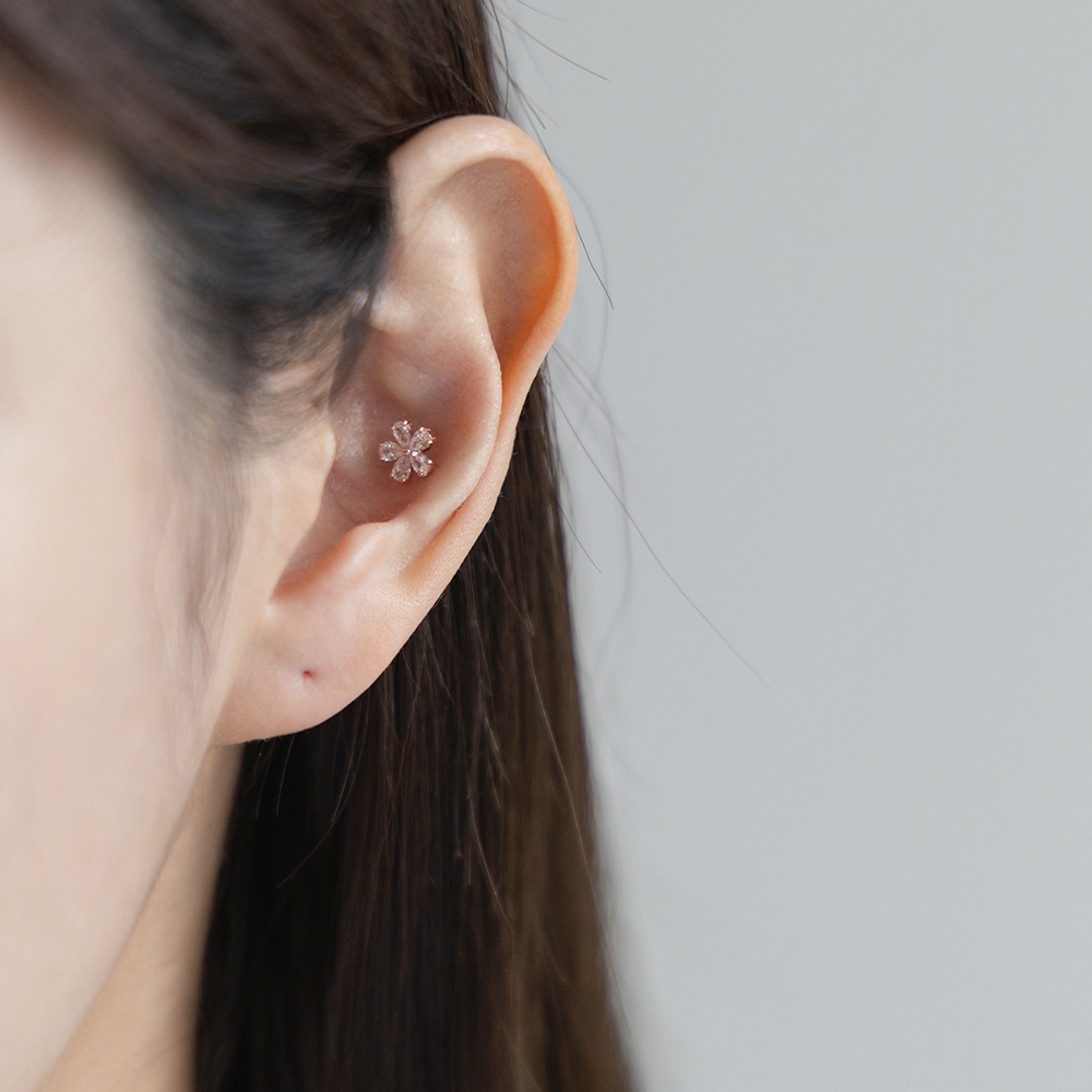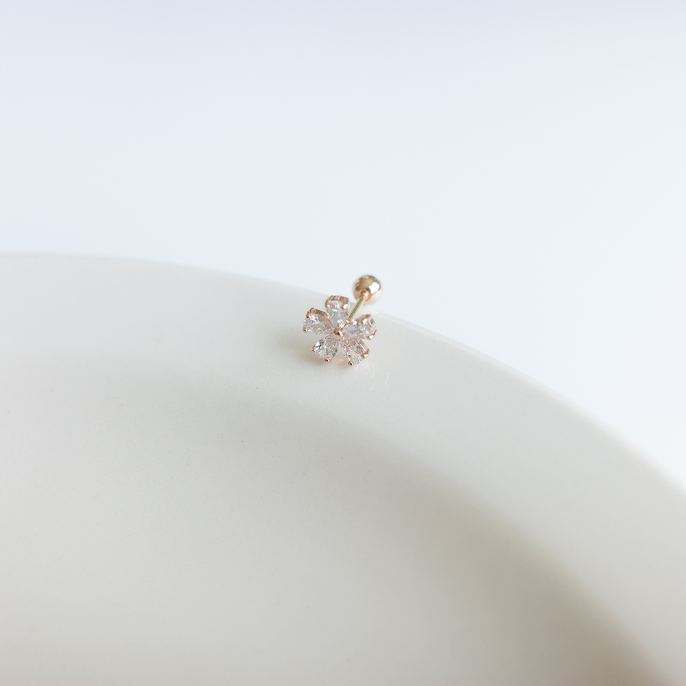 [오팔하우스] 14k 국화꽃 큐빅 피어싱 OPPKE6433