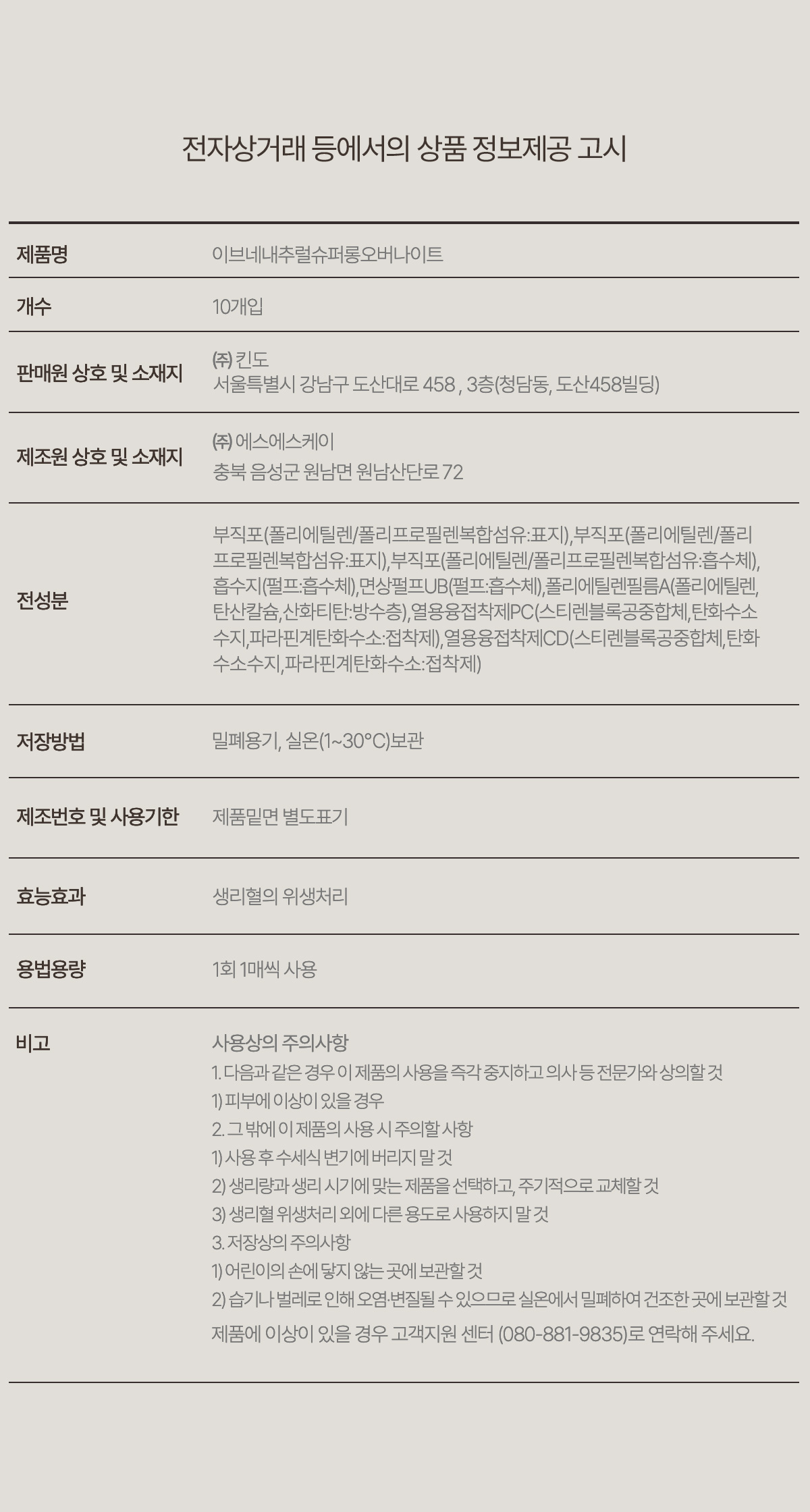 [이브네] 무표백 슈퍼롱 오버나이트 10개입X4팩