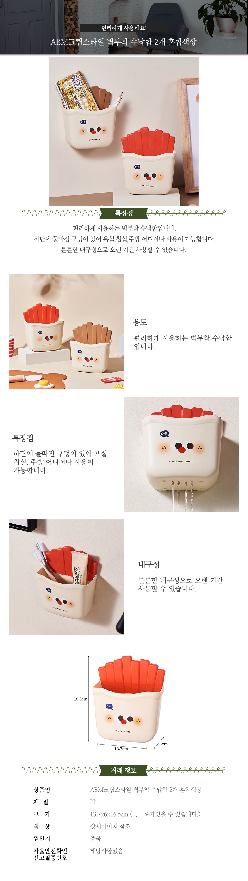 ABM크림스타일 벽부착 수납함 색상랜덤 1p