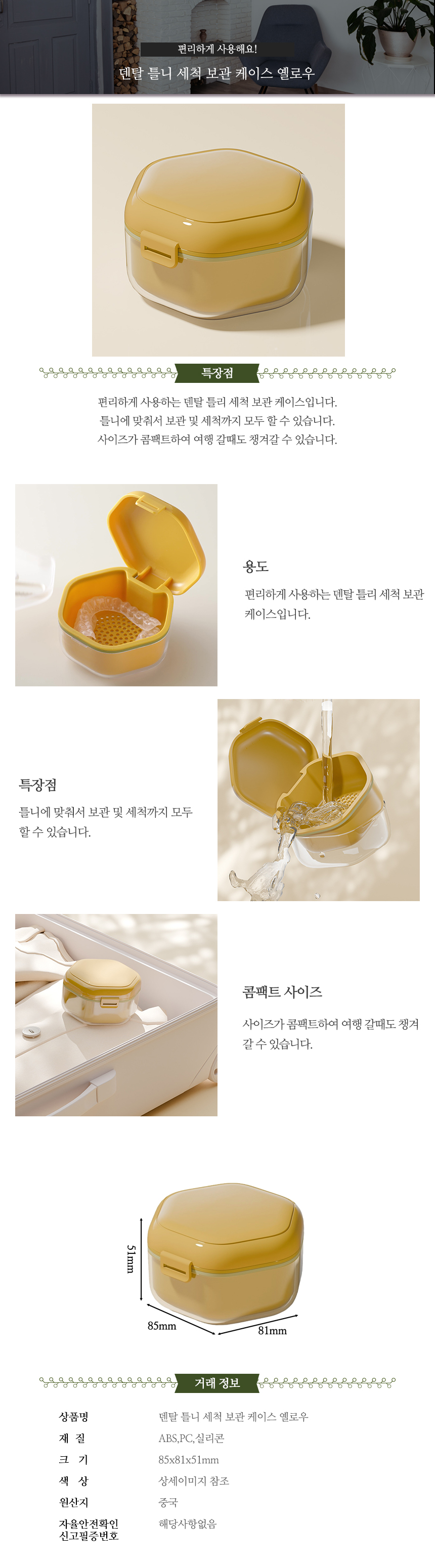 ABM덴탈 틀니 세척 보관케이스 옐로우