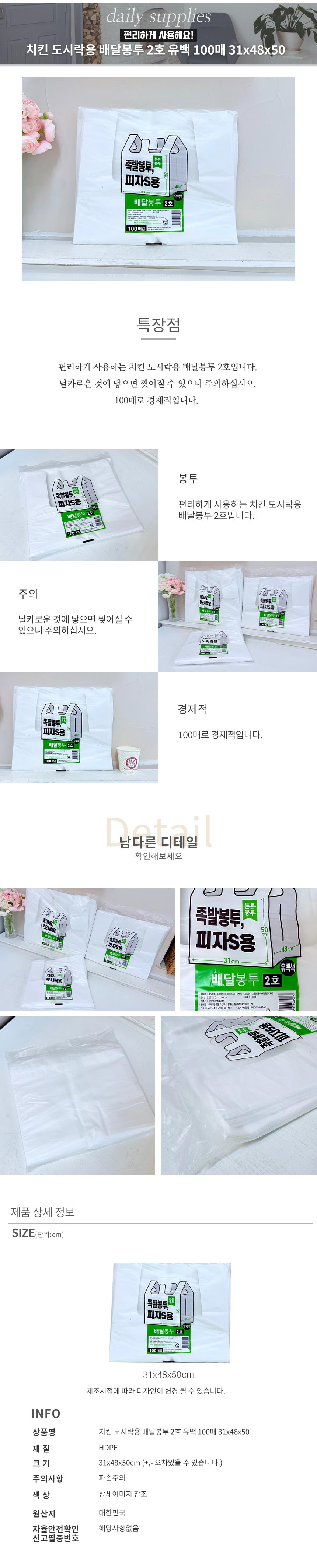 치킨 도시락용 배달봉투 2호 유백 100매 31x48x50