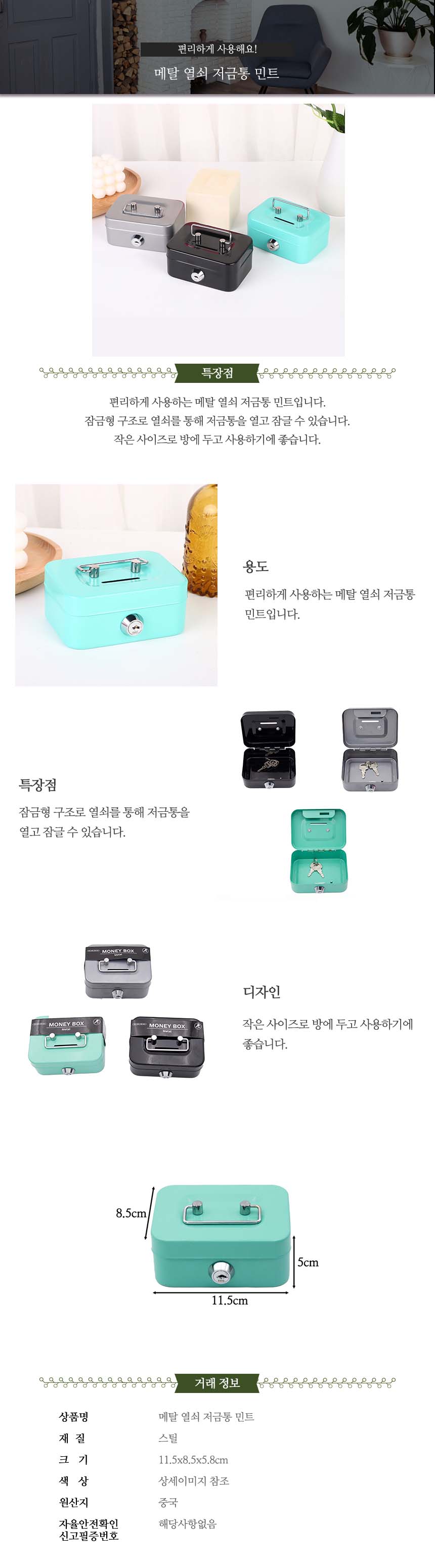 ABM메탈 열쇠 저금통 민트