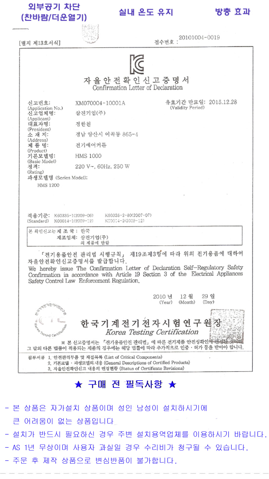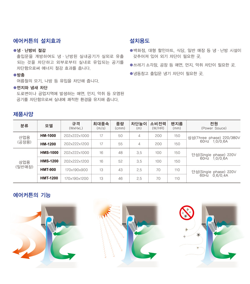 삼진기업 일반매장 상업용(단상) 에어커튼 HMS-1000