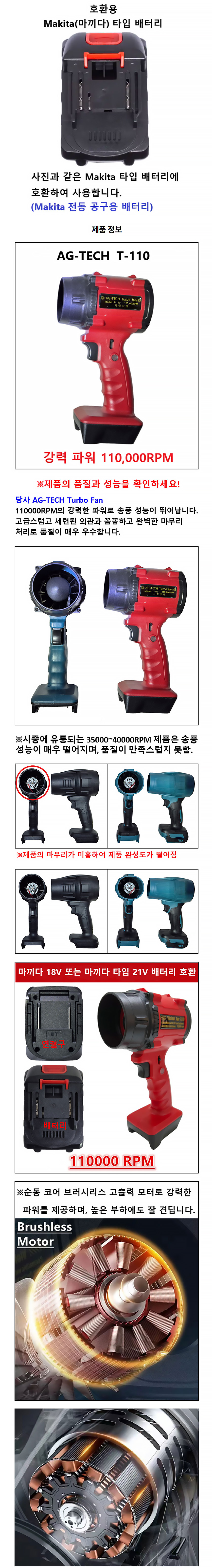 서령 AG-TECH 터보 팬세트 T-110 ( 21V 배터리 + 충전기포함) /송풍기 에어건