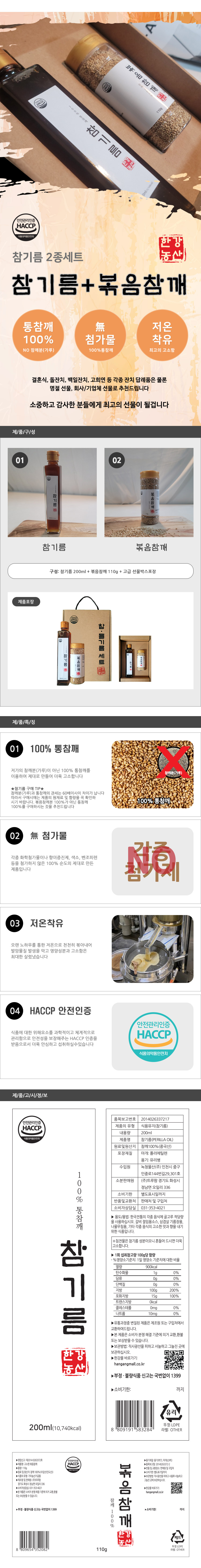 [한강농산] 참기름 2종세트(참기름200ml+볶음참깨110g)