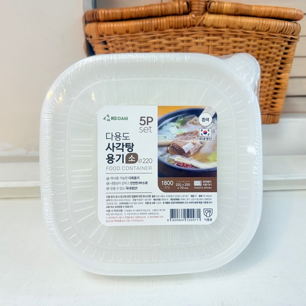 리담 다용도 사각 탕용기 5P 소 1800ml