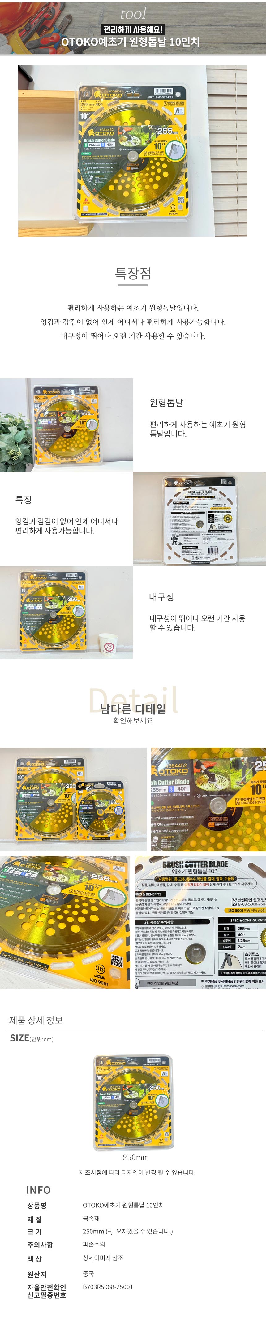 OTOKO예초기 원형톱날 10in