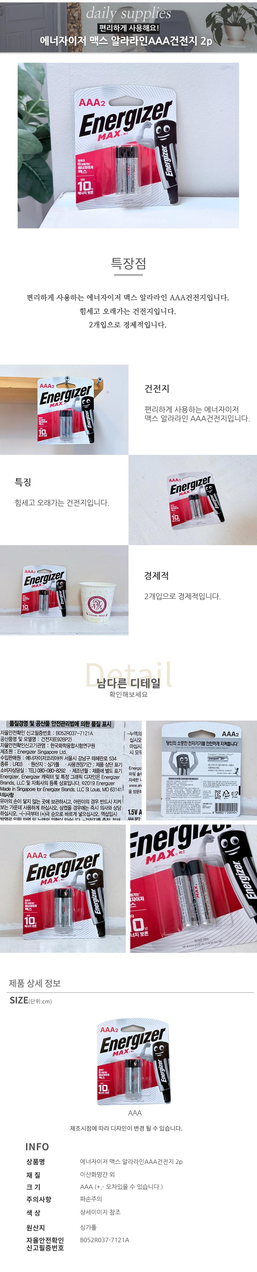 에너자이저 맥스 알라라인AAA건전지 2p