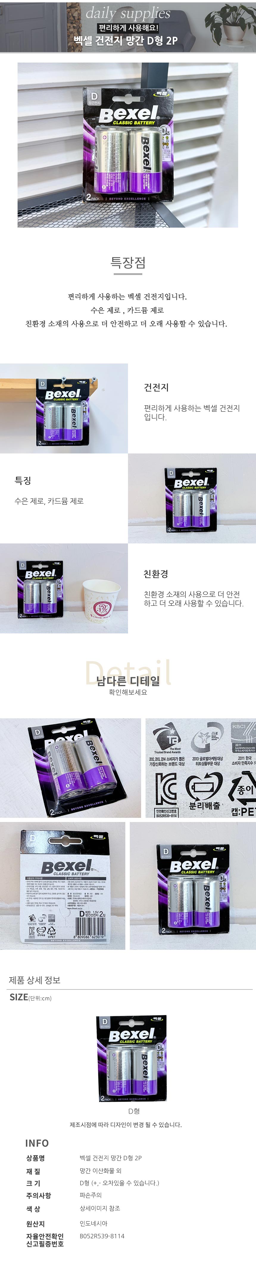 벡셀 건전지 망간 D형 2P