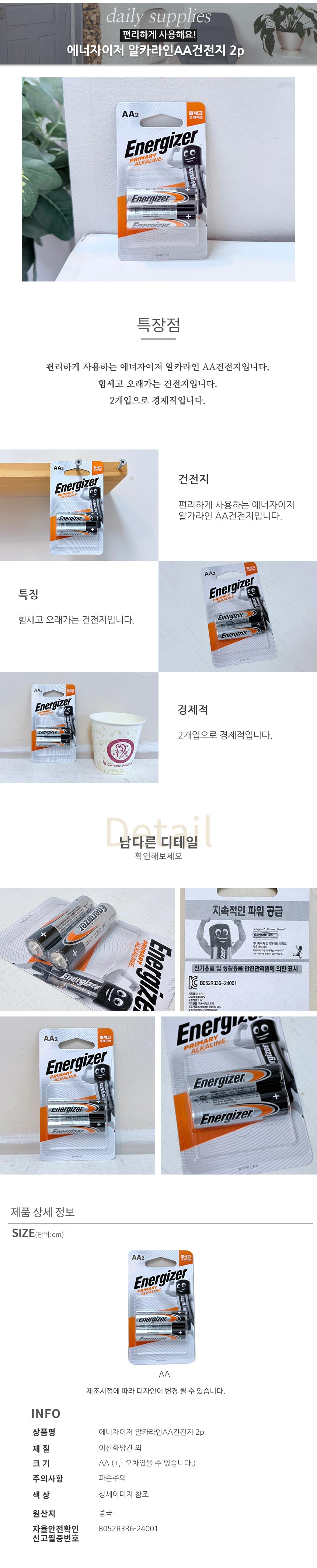 에너자이저 알카라인AA건전지 2p
