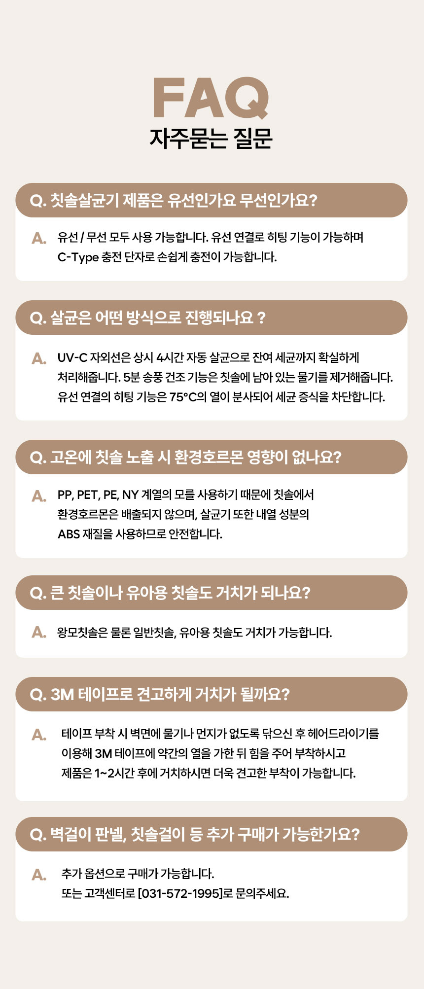 A/S 책임자와 전화번호 제품 상세정보 참고